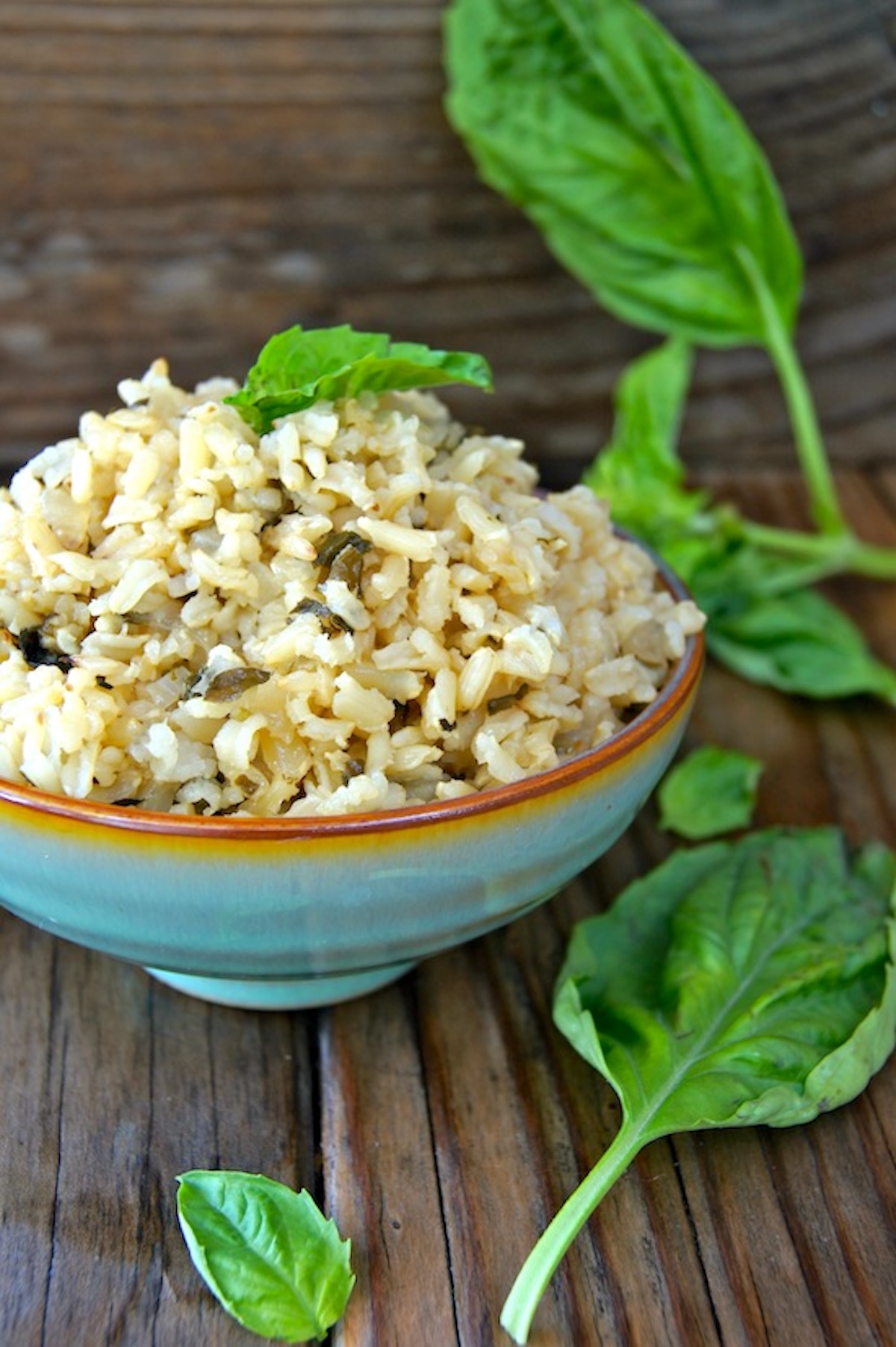Basil Rice with Roasted Garlic is made with brown rice and it's an excellent fresh, and flavorful side dish. It's also perfect to sit beneath saucy dishes like stews, to soak up the delicious flavors.